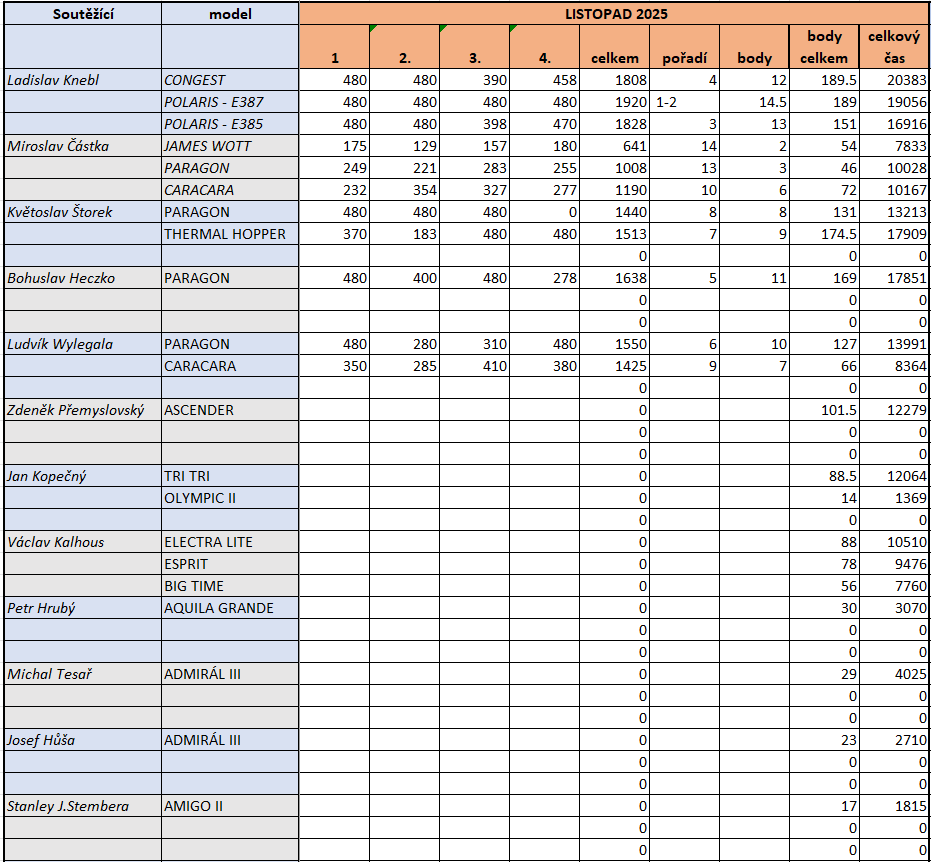 Korespondenční soutěž větroňů RETRO-PM 2025 LISTOPAD