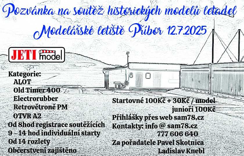 Zdravím všechny statečné, kteří si našli čas a zabojovali s časomírou se svými Retro stroji. Zvláště když nás v tomto měsíci někteří účastníci celoroční soutěže úspěšně reprezentovali se svými historiky na ME ve slunné Itálii. Gratulujeme ke skvělým úspěchům. Dále mám pouze jednu připomínku pro osvěžení paměti. Pokud mi posíláte výsledky za daný měsíc, učiňte tak posláním e-mailu na mou adresu: miroslav.castka(zavináč)gmail.com a nezapomeňte uvést do názvu slovo „RETRO“. Bez toho se mi to těžko hledá a mohl bych někoho opomenout. Děkuji Všem zúčastněným za neutuchající přízeň a přeji hezké léto a mnoho modelářských zážitků.
